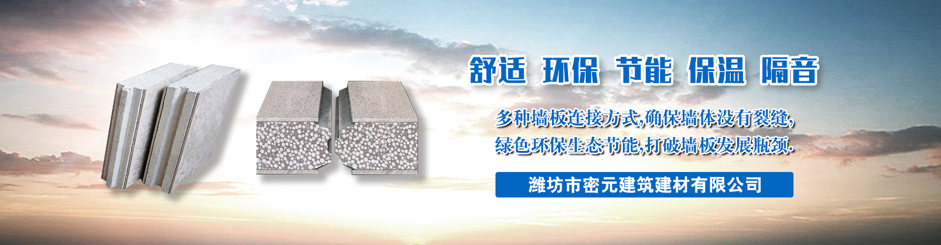 濰坊市密元建筑建材有限公司是一家高科技、綠色環(huán)保、節(jié)能降耗、致力于生態(tài)環(huán)境的墻體材料專(zhuān)業(yè)公司。公司專(zhuān)業(yè)生產(chǎn)暢銷(xiāo)煙臺(tái)等地的防火墻板,隔音墻板,FPB輕質(zhì)墻板,FPB輕質(zhì)隔墻板,ACC輕質(zhì)墻板,ACC復(fù)合墻板,ACC隔墻板等墻體材料。公司位于諸城市開(kāi)發(fā)區(qū)舜王工業(yè)園內(nèi),地理?xiàng)l件優(yōu)越,交通十分便利。…
